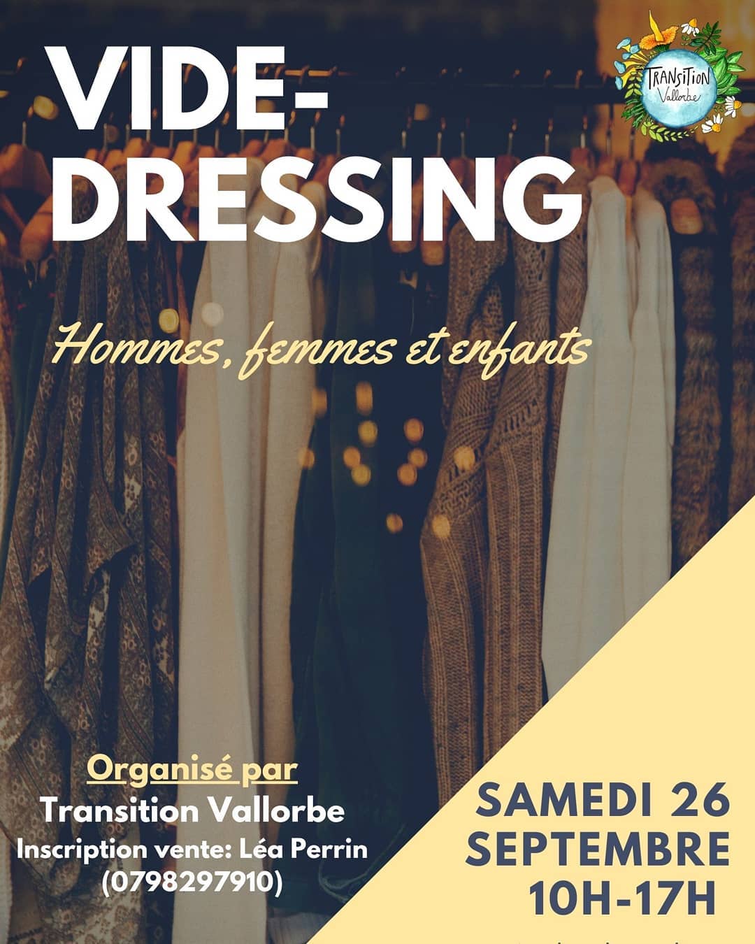 Vide-dressing à Vallorbe le 26.9 La Volière, Rue du Faubourg 15, 1337 Vallorbe Entrée libre ! Inscription vente : Lea Perrin (079 829 79 10) N'hésitez pas à venir chercher ce qu'il vous faut 😉 Précédent Suivant